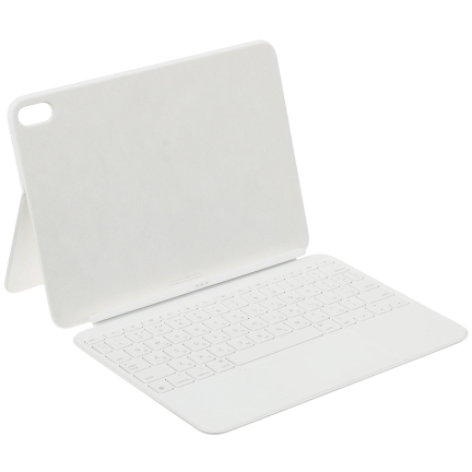 Magic Keyboard для iPad 10 (2022) воспринимается не просто как аксессуар, а как попытка приблизить планшет к формату компактного ноутбука. В отличие от более простых чехлов с клавишами, здесь акцент сделан на удобстве набора текста и стабильности конструкции. Клавиши получили механизм с ходом около 1 мм, поэтому печатать заметно комфортнее по сравнению с предыдущими решениями без чёткой тактильной отдачи. При этом сам корпус стал чуть жёстче, что отражается на устойчивости при работе на коленях или столе. Такой формат подойдёт тем, кто часто работает с текстами, отвечает на письма, ведёт заметки или использует планшет как основной инструмент для повседневных задач.